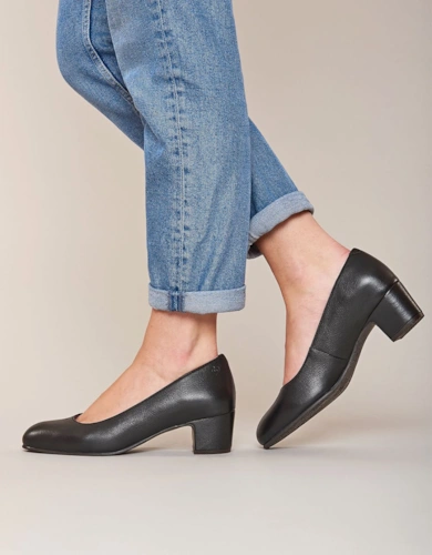 Mid Slim Heel Pointed Toe Slingback 50S Patent Court Shoes