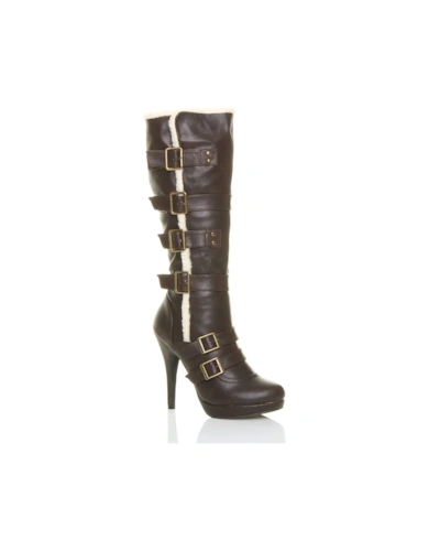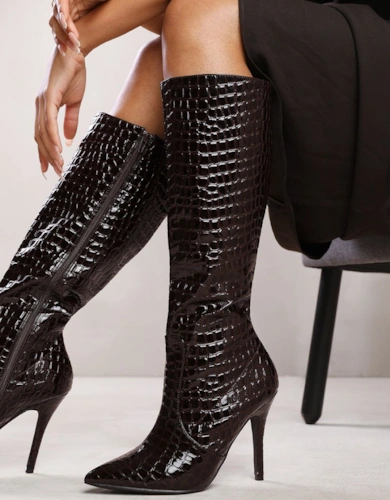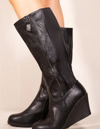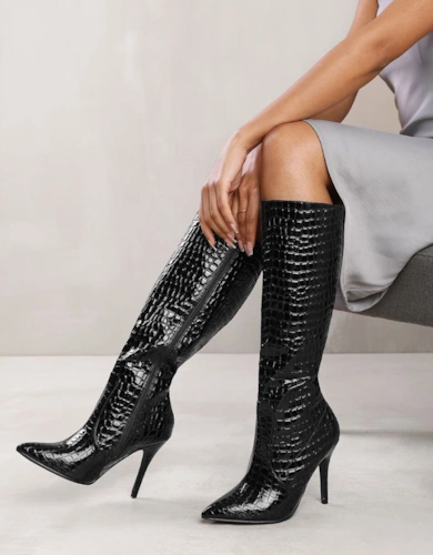 Danie Faux Leather Women's Black Heeled Mid Calf Boots