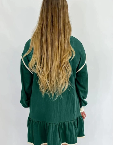 Long Sleeve Navy Wave Hem Dress