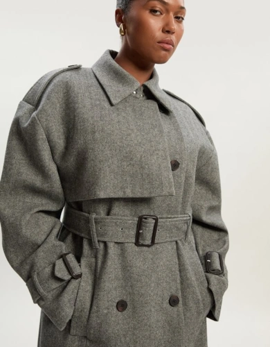Plus Size Herringbone Wool Belted Trench Tailored Maxi Coat