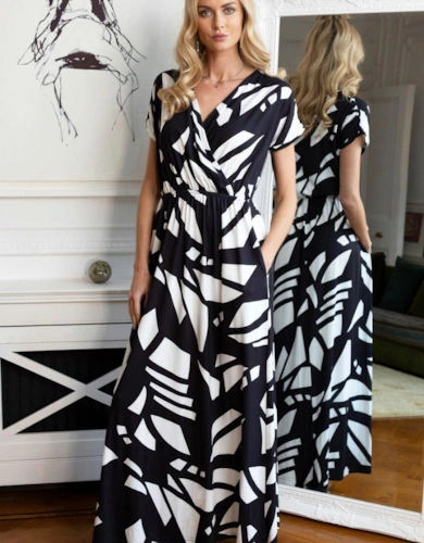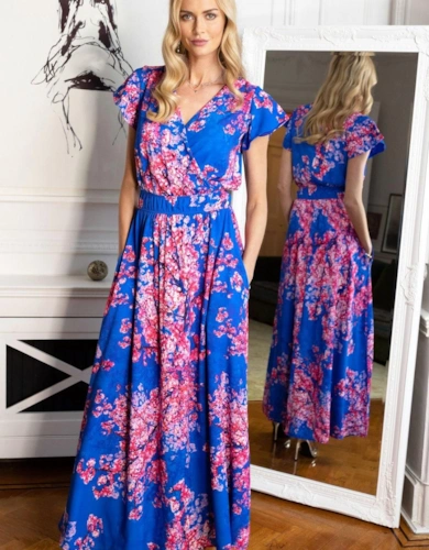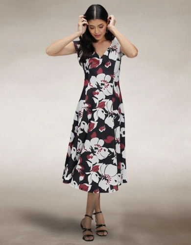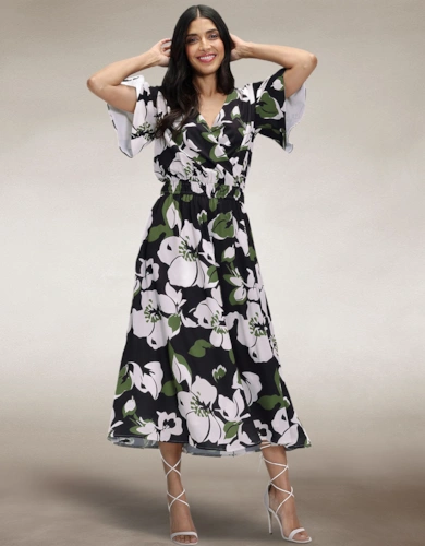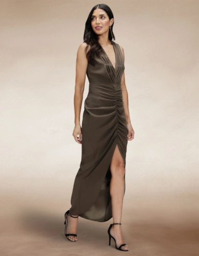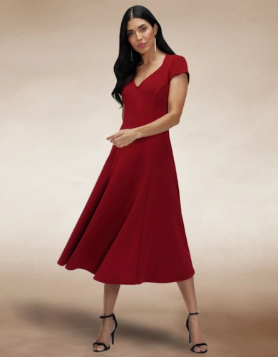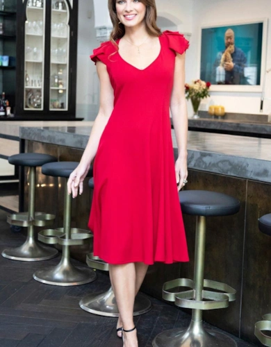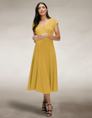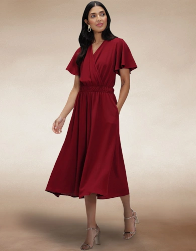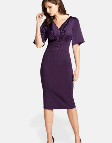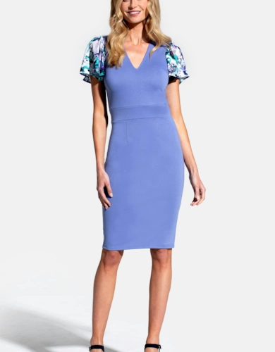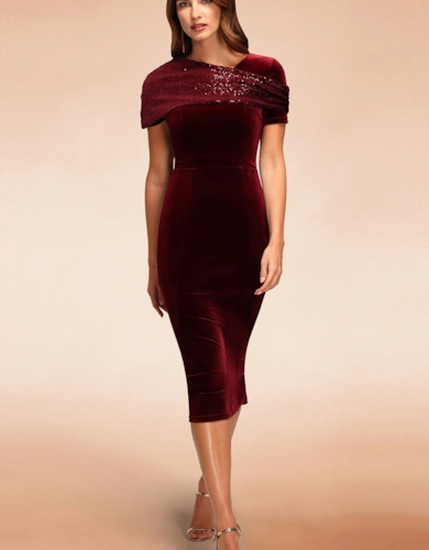 Blouson Sleeved V Neck Sequin Dress