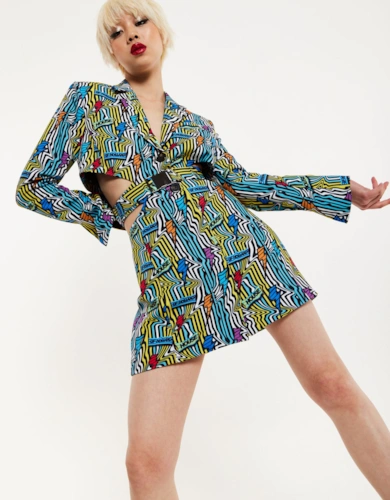 Mini Jacket Dress Lightning Bolt Print With Buckle Fastening