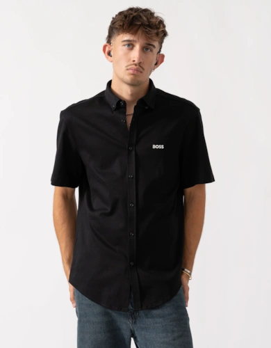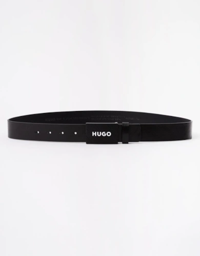 Hugo Gilao Mens Matte Leather Belt With Branded Plaque Buckle - Black 001