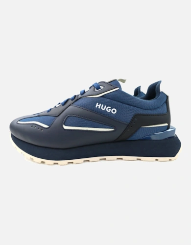 Hugo Cubite Lace Up Mixed Material Trainers Dark Blue