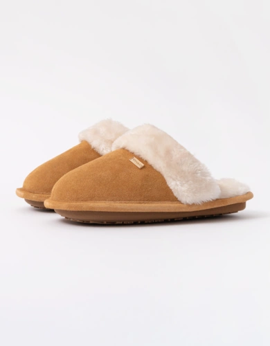 Womens Sherpa Collar Moccasin Slippers - Biscuit