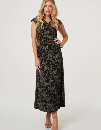 Polka Dot Cap Sleeve A-Line Maxi Dress