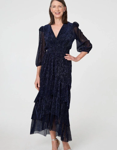 Floral Long Sleeve Lace Trim Maxi Dress