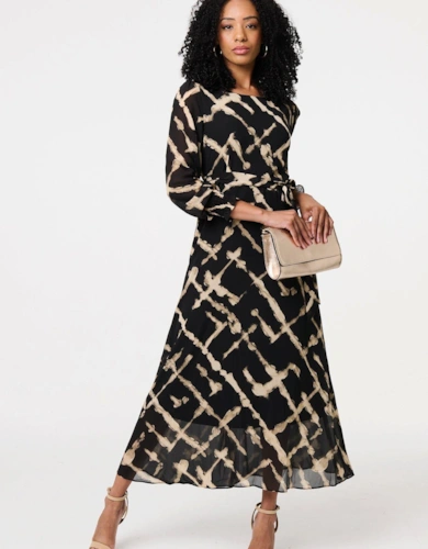 Printed Long Sleeve Layered Maxi Dress