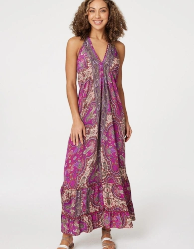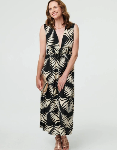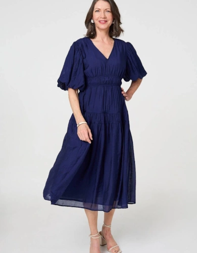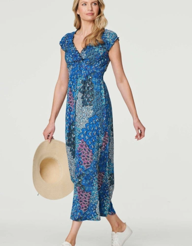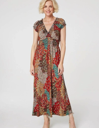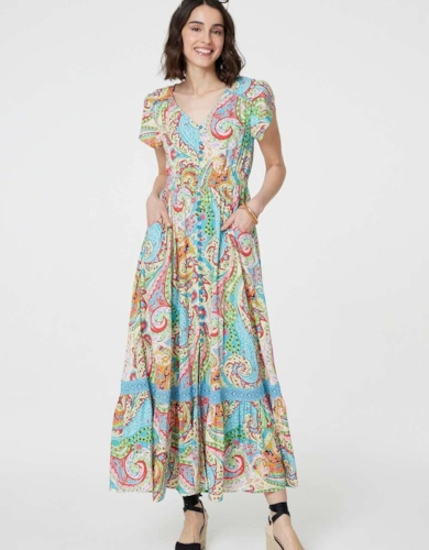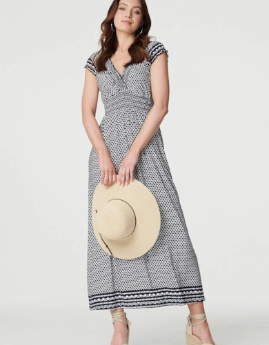 Polka Dot Cap Sleeve A-Line Maxi Dress