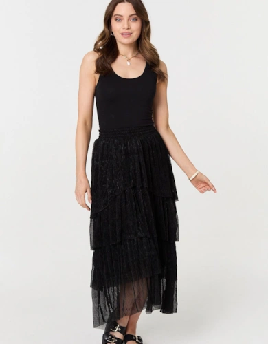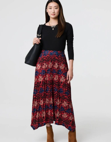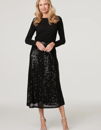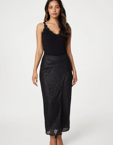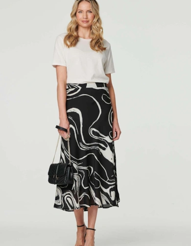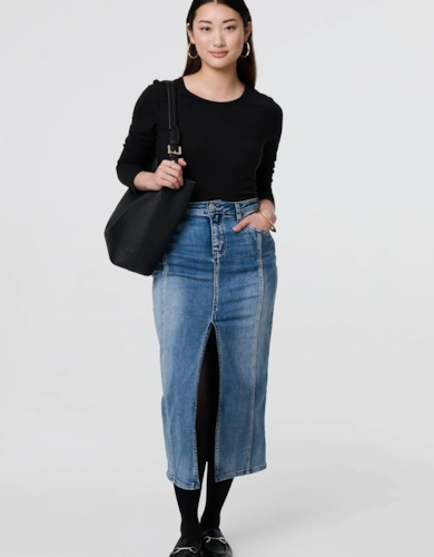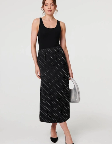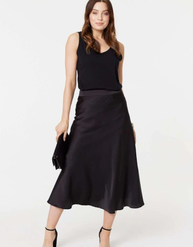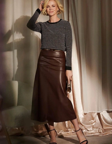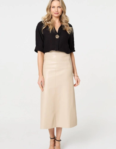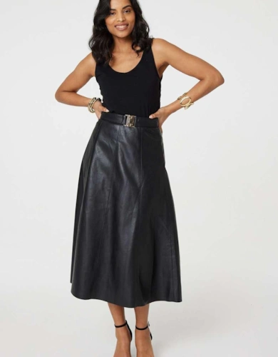 Faux Leather Belted Midi Skirt