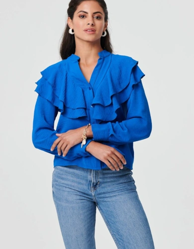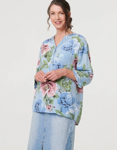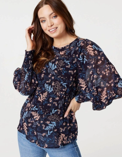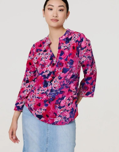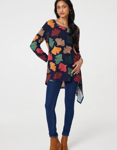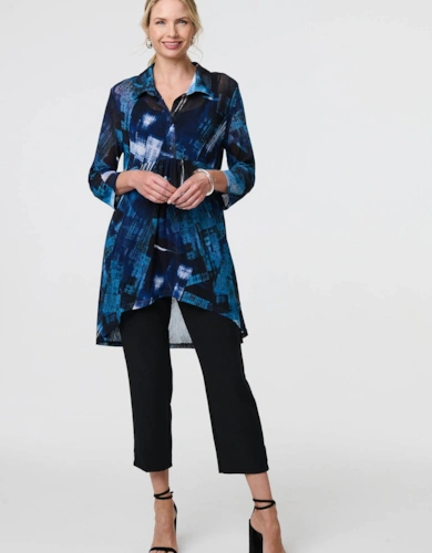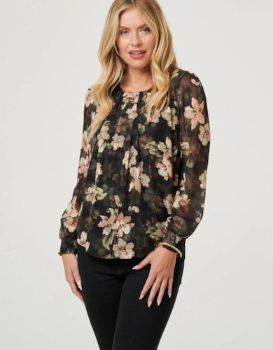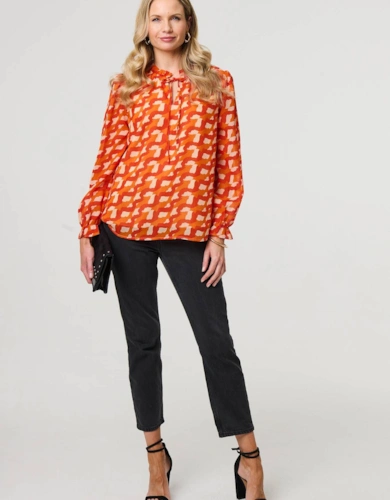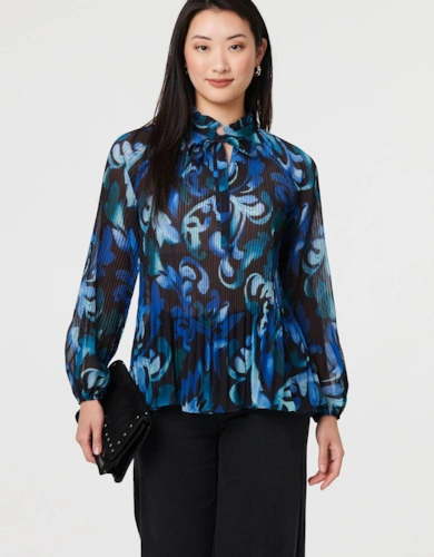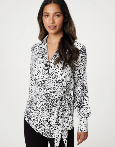Animal Print Tie-Up Keyhole Neck Blouse