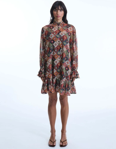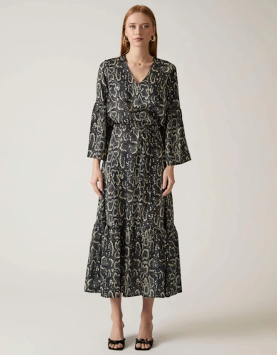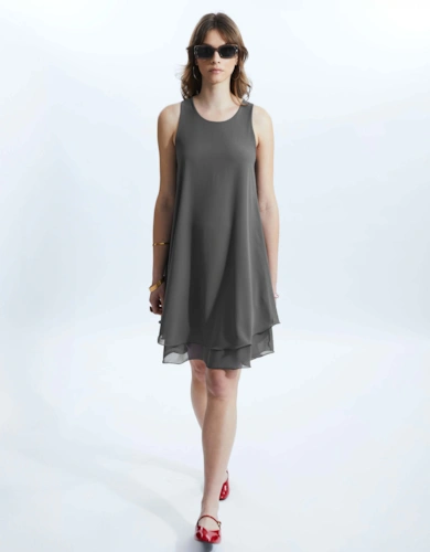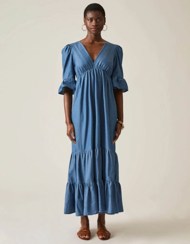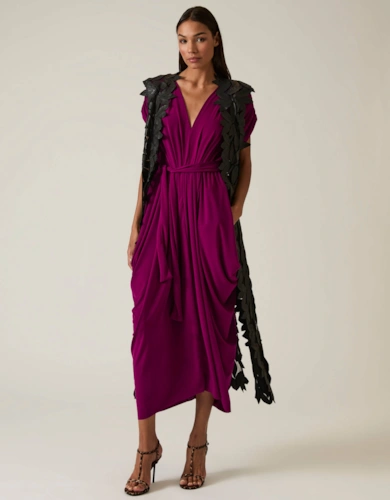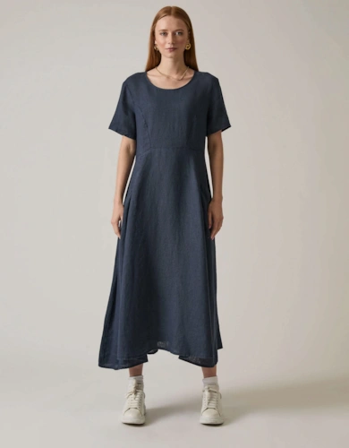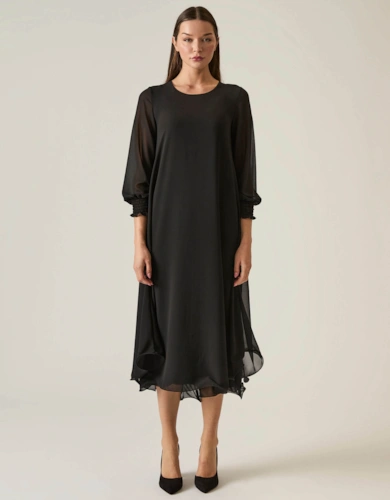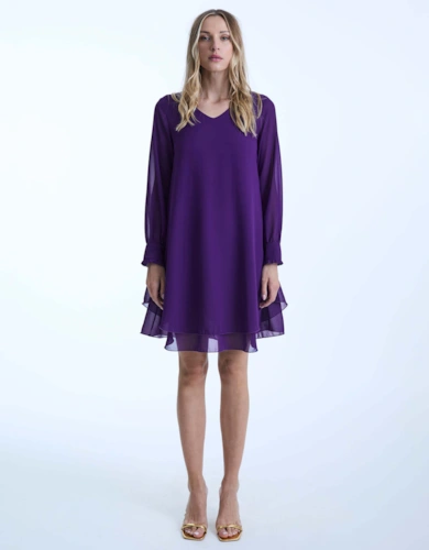 Roll Sleeve Midi Dress Lilac