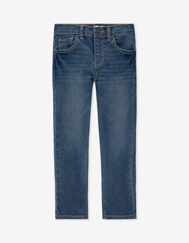 Petite Denim Tailored Button Front Straight Leg Jeans