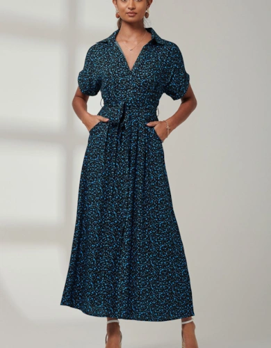 Satin Floral Shirt Dress