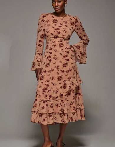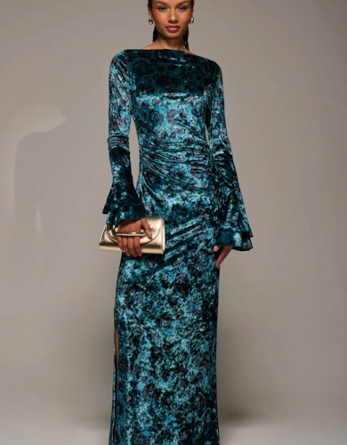Wrap Front Frill Detail Maxi Dress