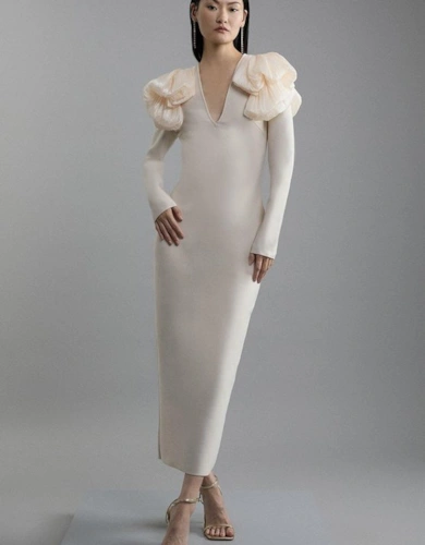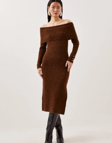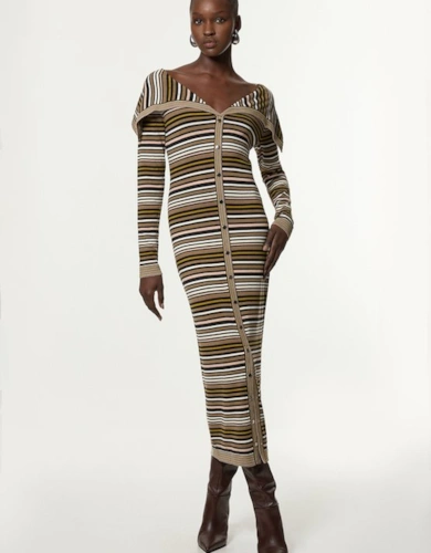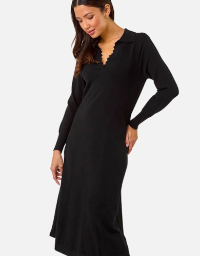 Textured Stitch Wrap Back Knitted Maxi Dress