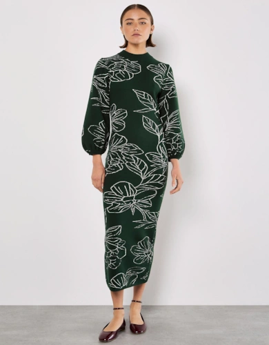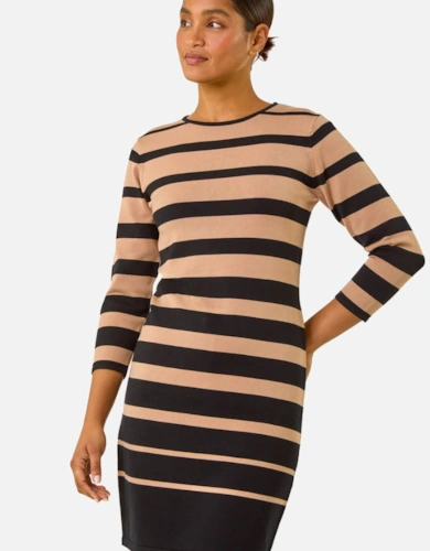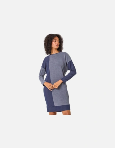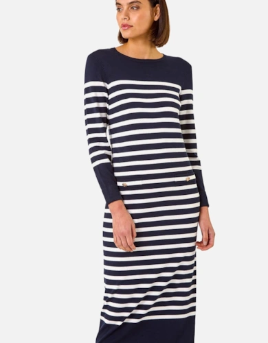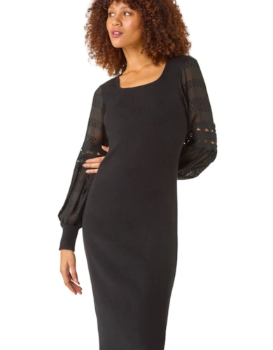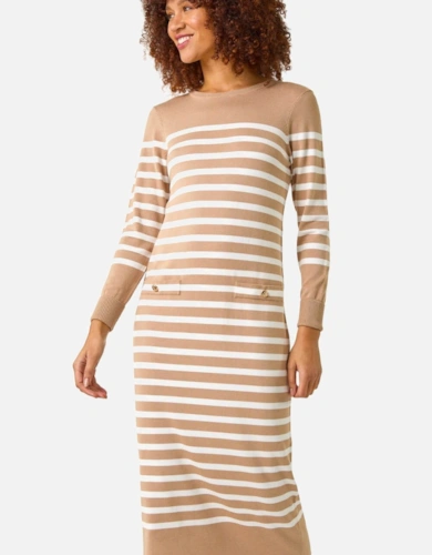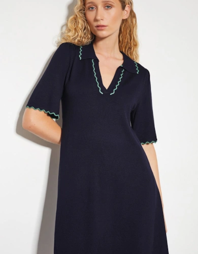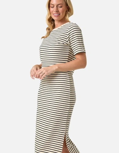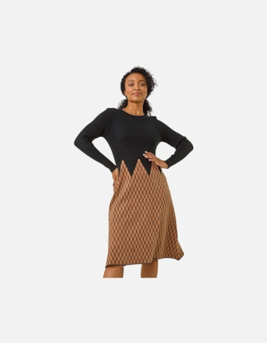 Rib Knit Trim Detail Full Skirt Midi Dress