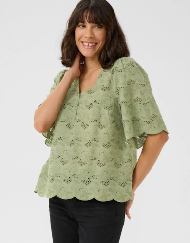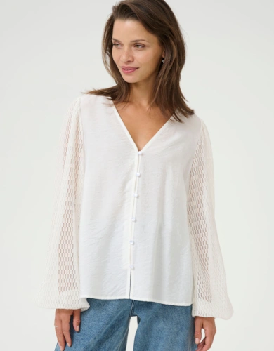 Karoca Long Sleeve Swiss Dot Blouse Plain