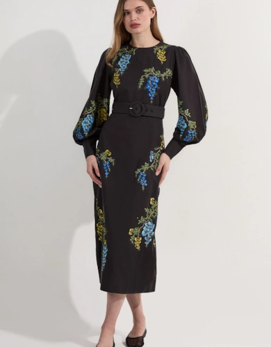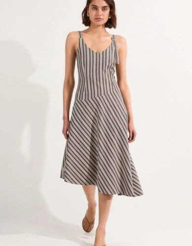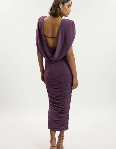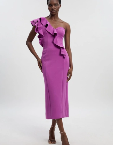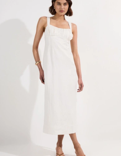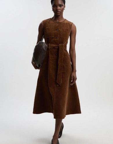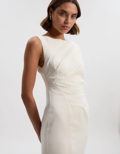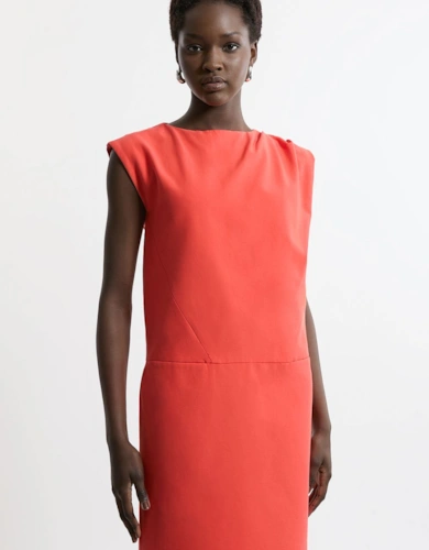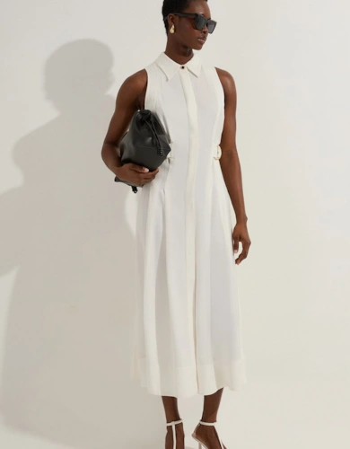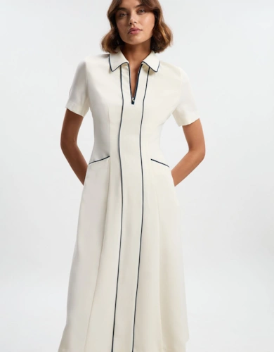 Tailored Pleat Neck Pocket Detail Midi Dress