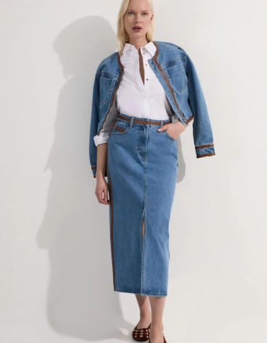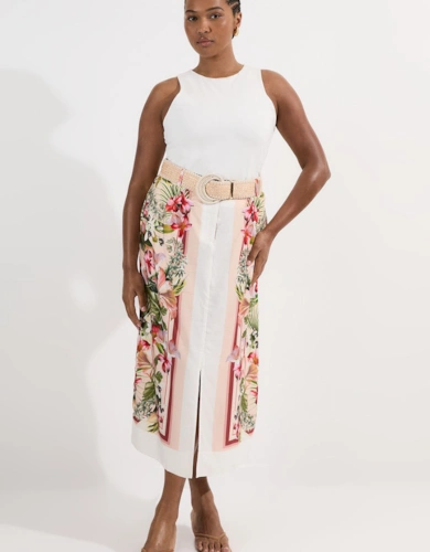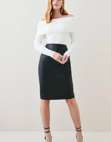 Leather Stripe Mix Full Midi Skirt