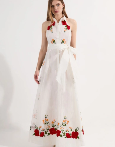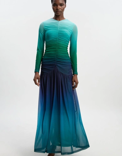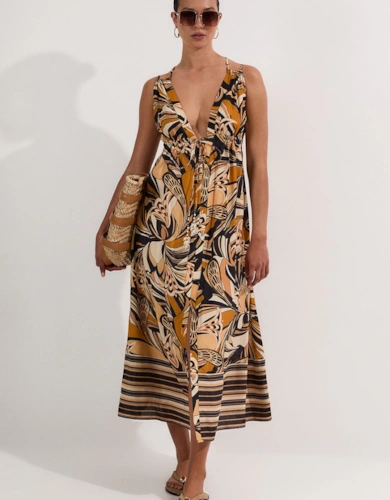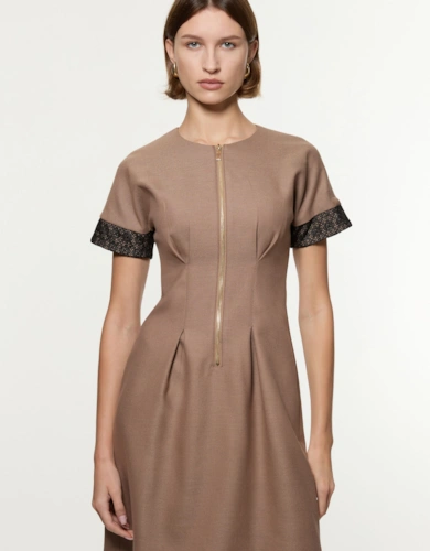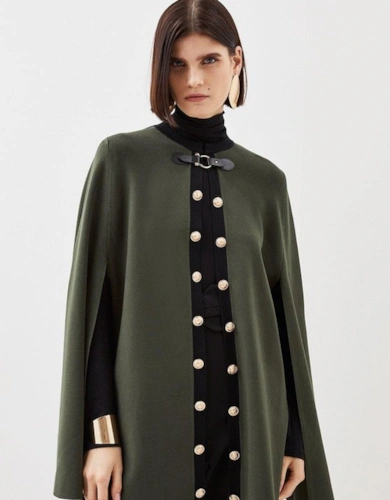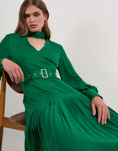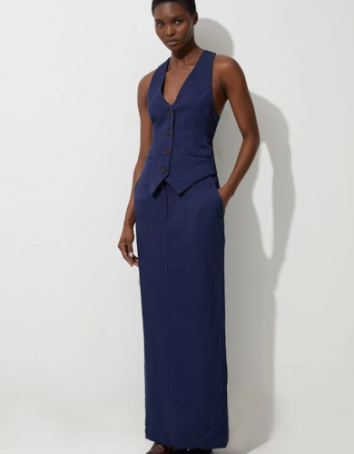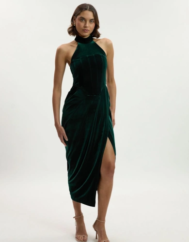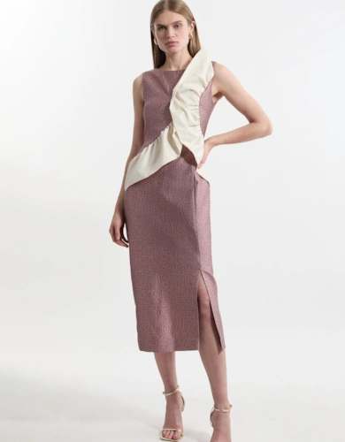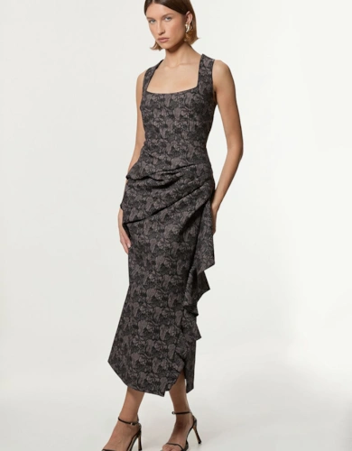 Compact Stretch Viscose Back Drape Tailored Midi Dress