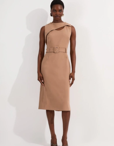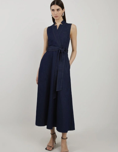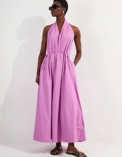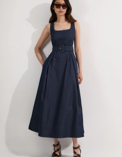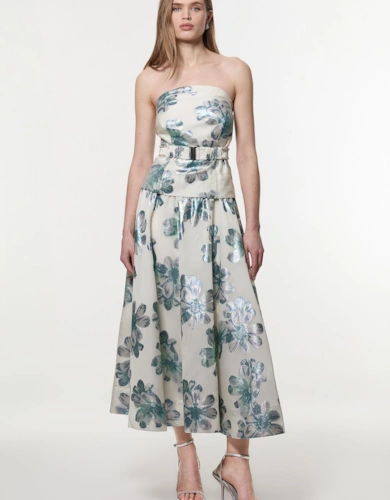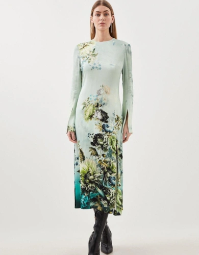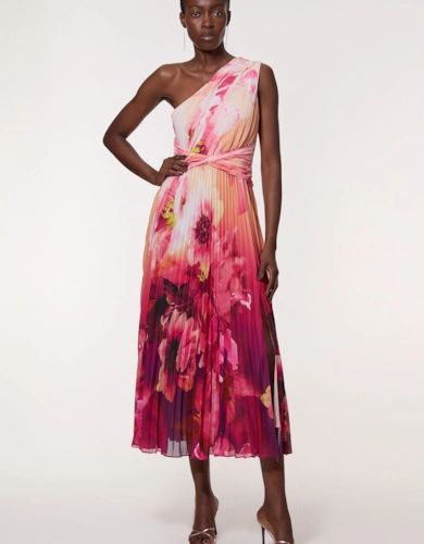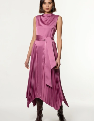 Satin Back Crepe Pleat Woven Midaxi Dress