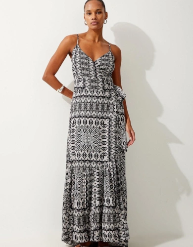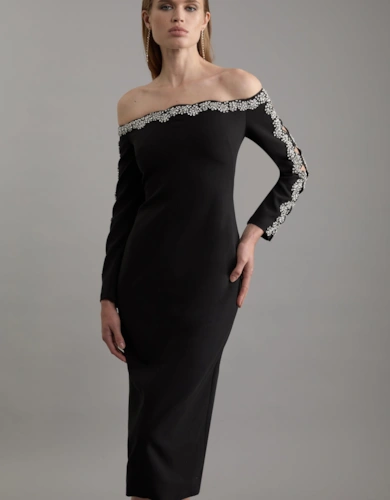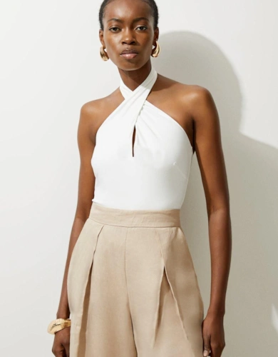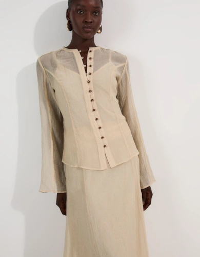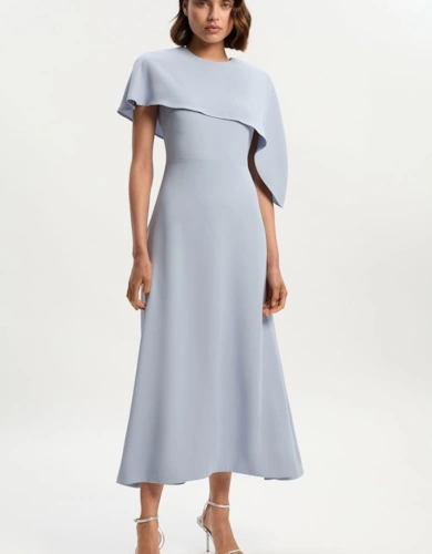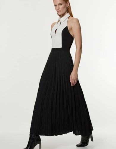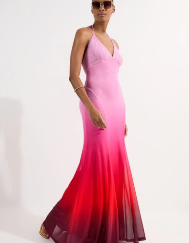 Asymmetric Neck Figure Form Mesh Panel Maxi Dress