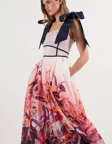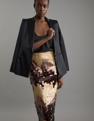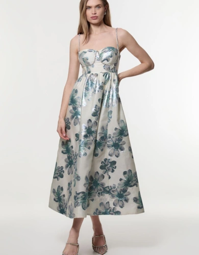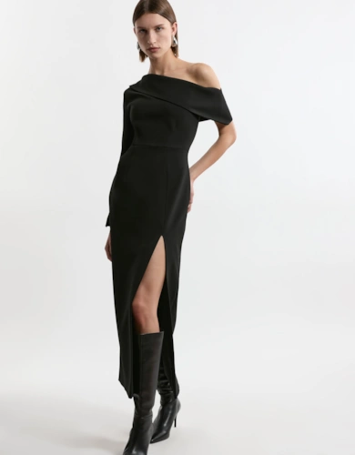 Crystal Embellished One Shoulder Woven Maxi Dress