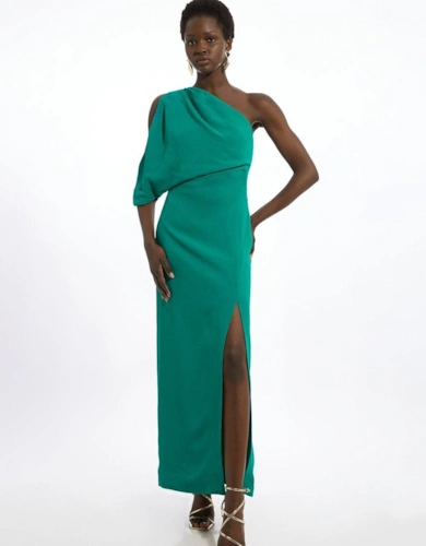 Stretch Drapey Crepe Ruched Plunge Neck Batwing Sleeve Bodysuit