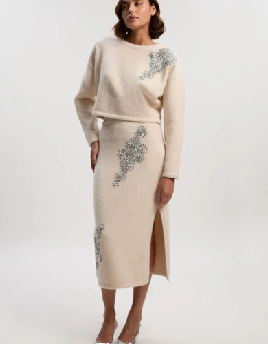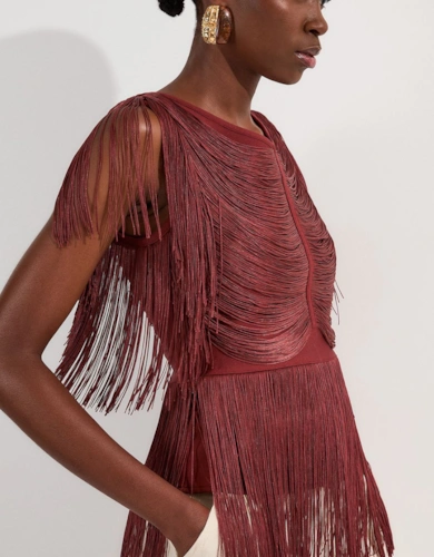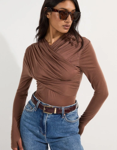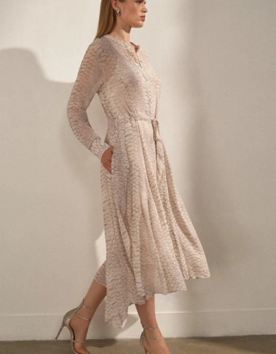 Petite Ombre Printed Mesh Ruched Long Sleeve Midi Dress