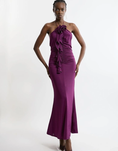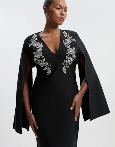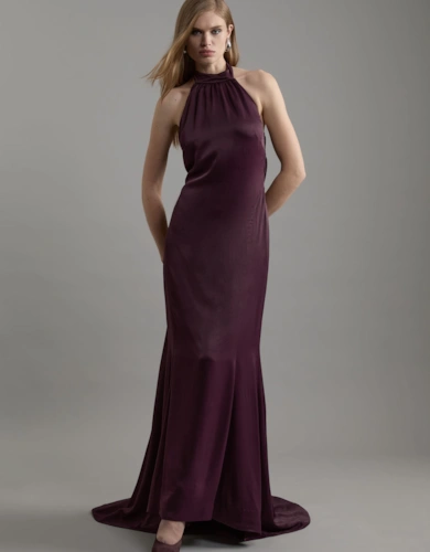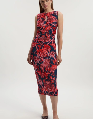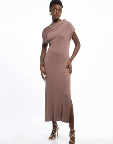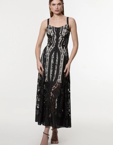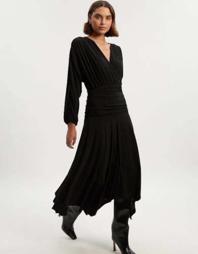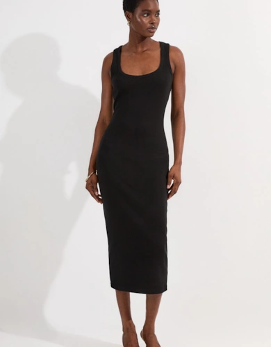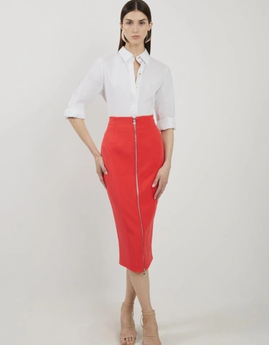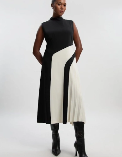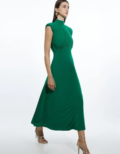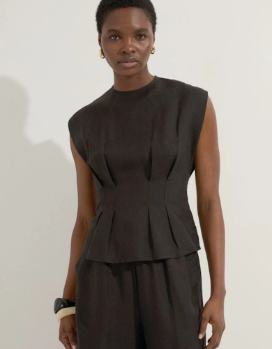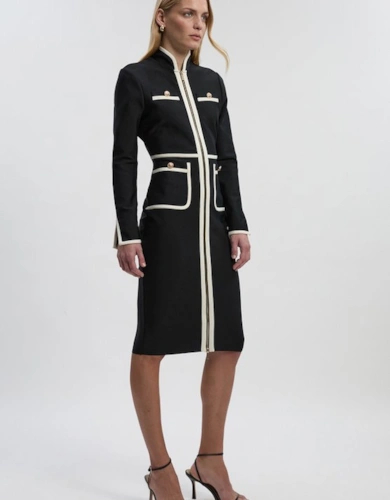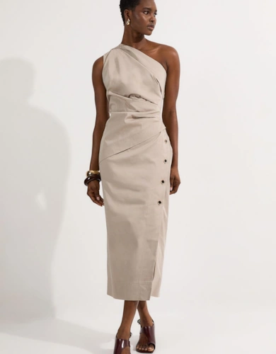Petite Premium Linen Tab Waist Detail Full Skirt Tailored Midi Dress