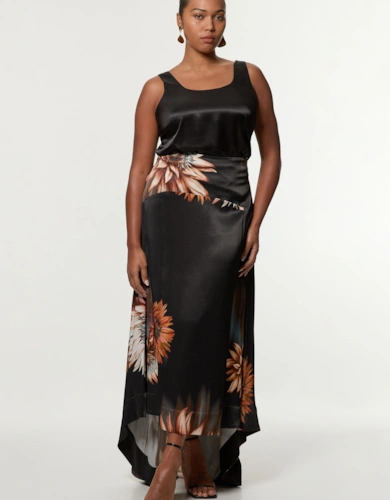 Plus Size Viscose Satin Printed Panelled Train Maxi Skirt