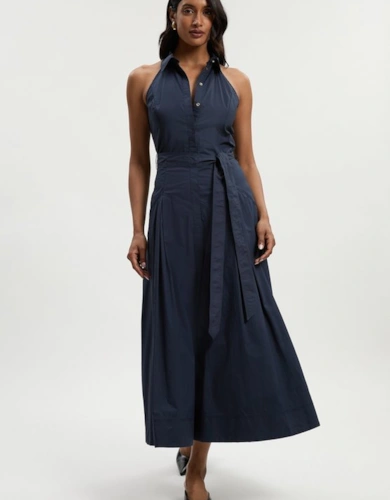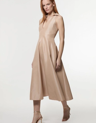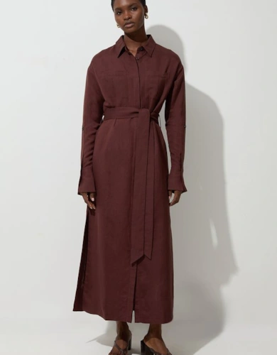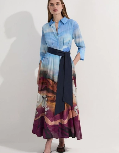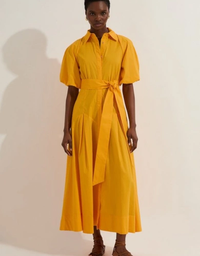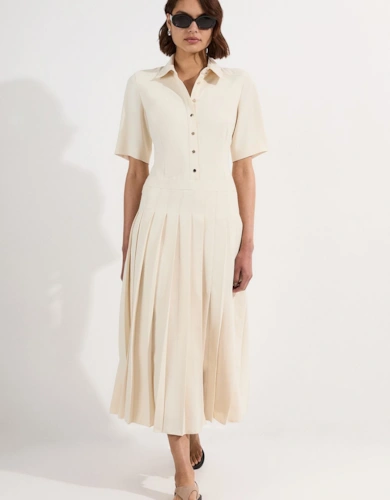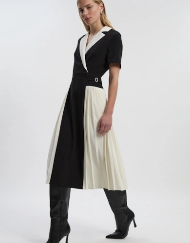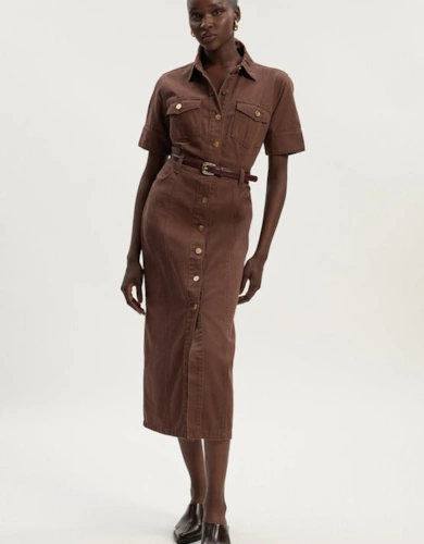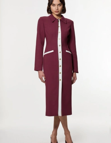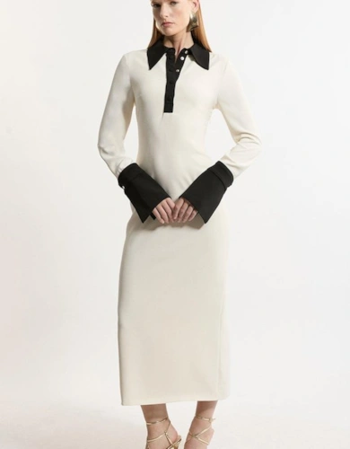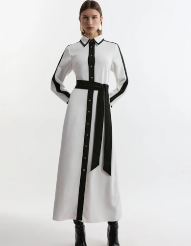 Petite Compact Stretch Contrasted Tipped Sleeved Shirt Dress