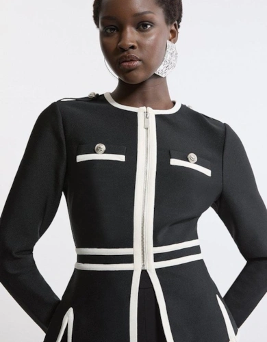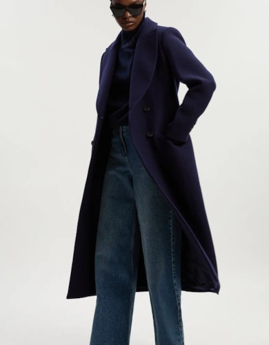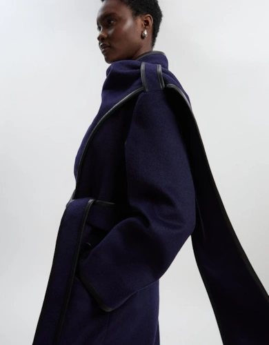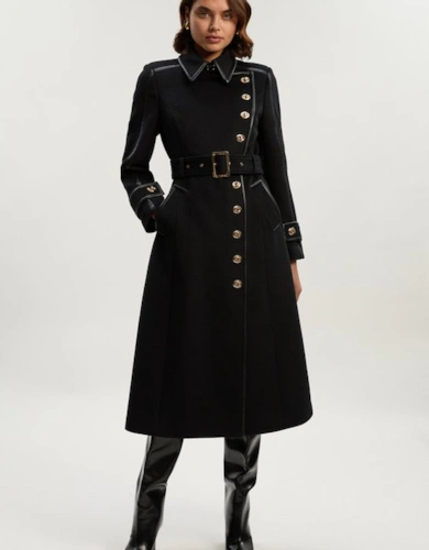 Petite Brushed Wool Pu Trim Belted Tailored Double Breasted Midi Coat