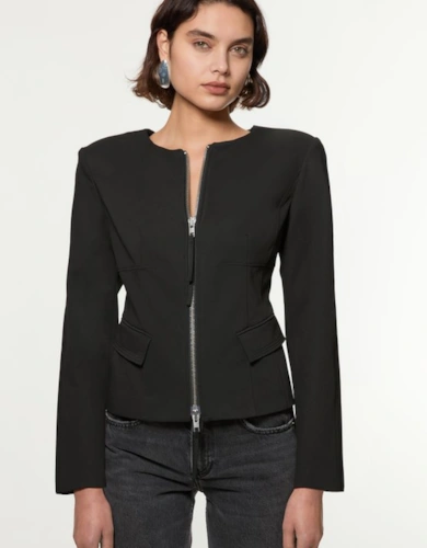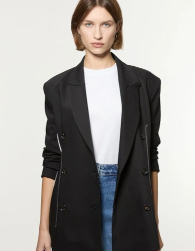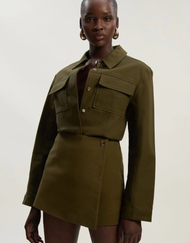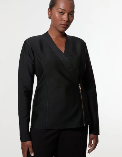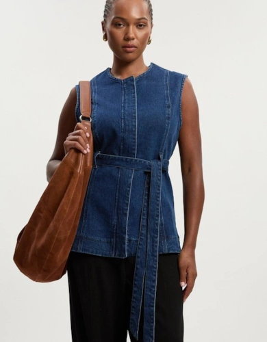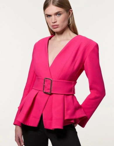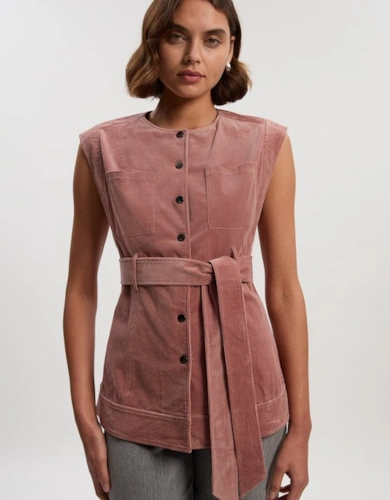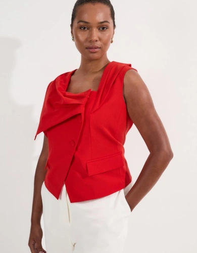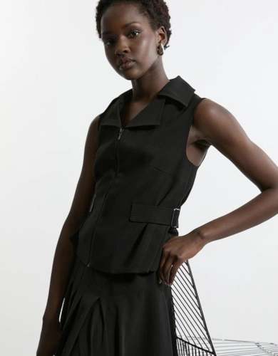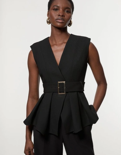 Tailored Crepe Buckle Detail Sleeveless Jacket