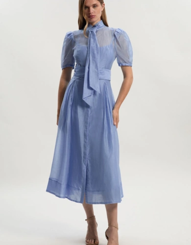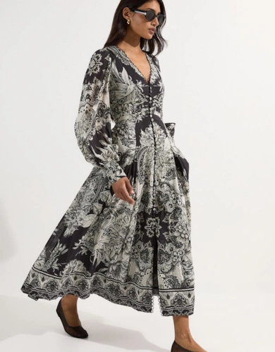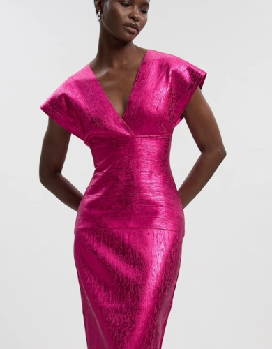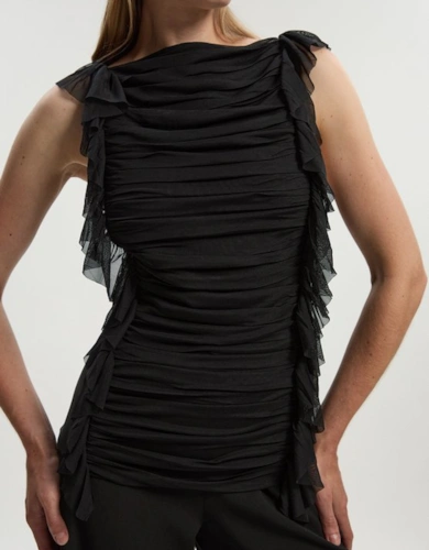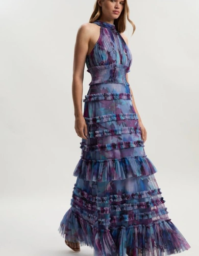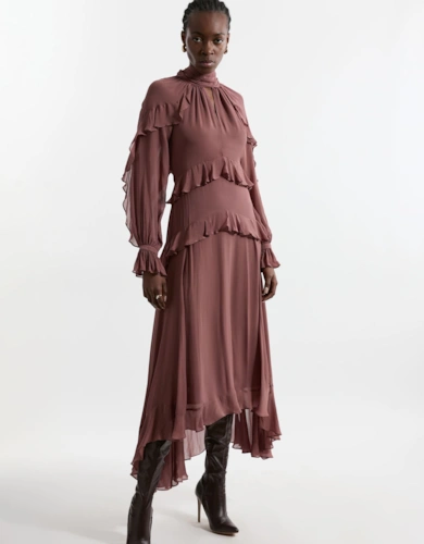 Petite Viscose Georgette Ruffle Detail Drama Woven Maxi Dress
