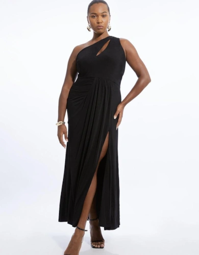 Plus Size Stretch Drapey Crepe Ruched Plunge Neck Batwing Sleeve Maxi Dress