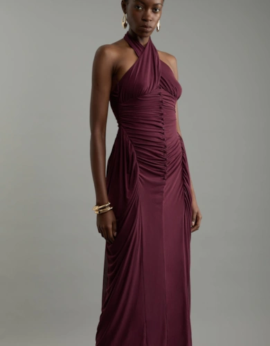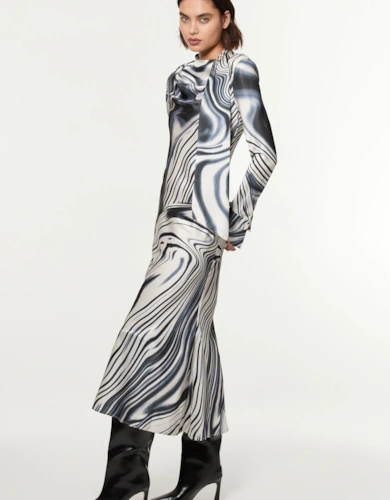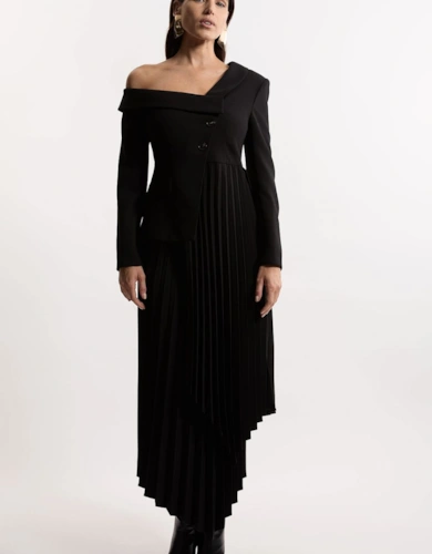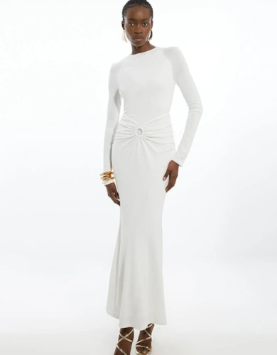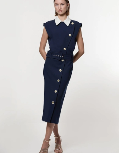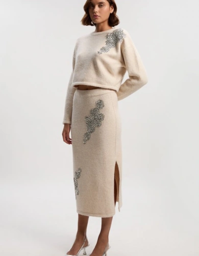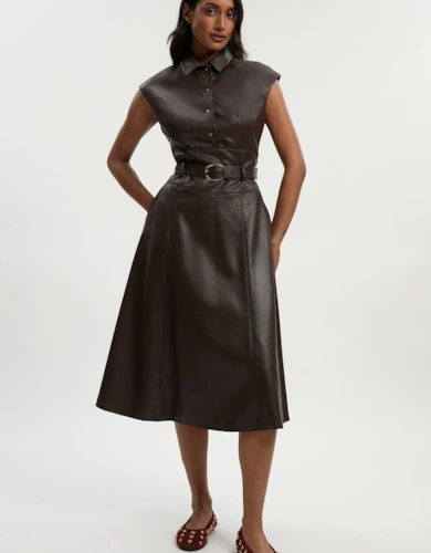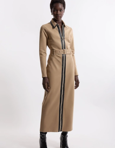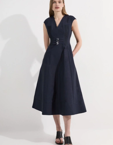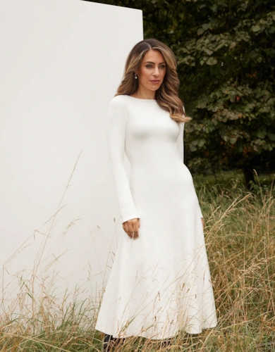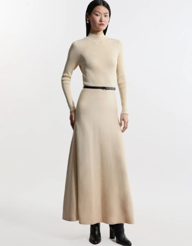Lydia Millen Compact Knit Wool Look Full Skirt Midi Dress