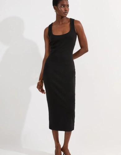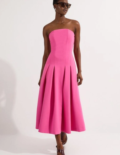 Textured Tweed Belted Full Skirted Midi Dress