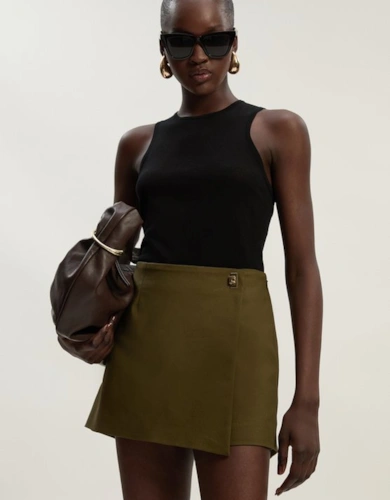 Tall Linen Twill Top Stitch Belted Woven Short