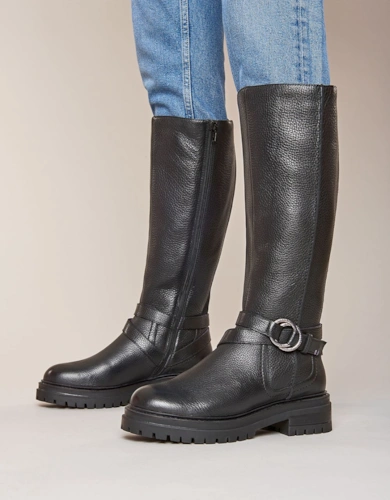 'Audrey' Wide Calf Block Heel Point Toe Knee High Boots