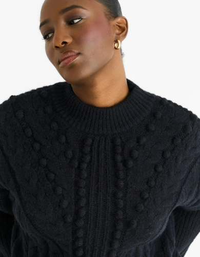 Black Crew Neck Rib Knit Oversized Jumper
