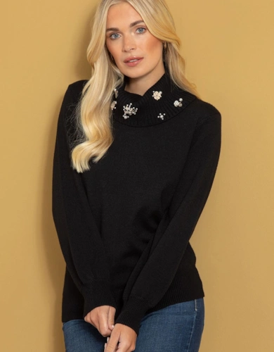 Printed Cowl Neck Knitted Jumper Dress
