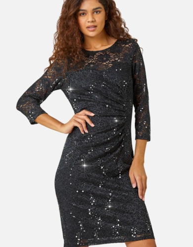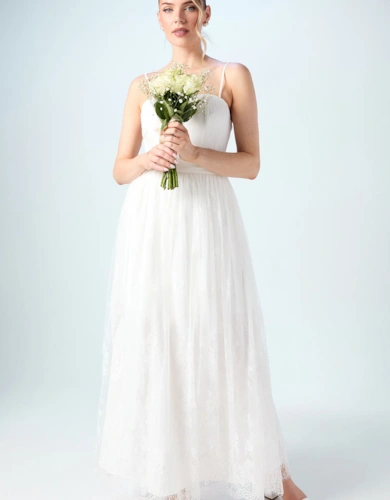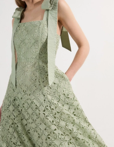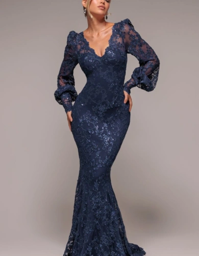 Applique And Lace Georgette Woven Halter Maxi Dress