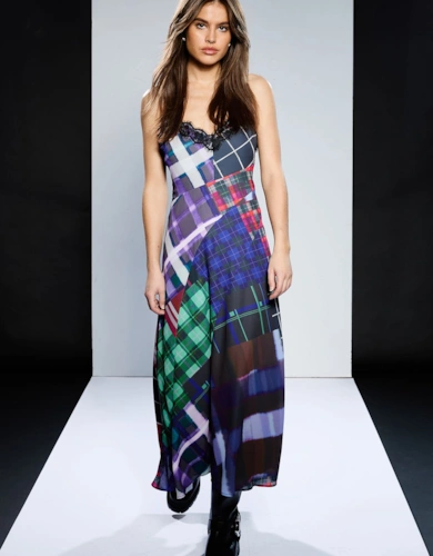 Satin Guipure Lace Woven Maxi Slip Dress