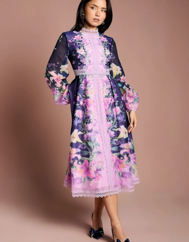 Aurelia Lace Trim Maxi Dress In Turquoise And Green