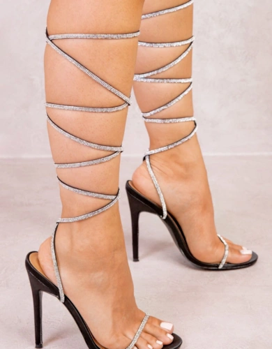High Heel Lace Up Strappy Faux Leather Heeled Sandals