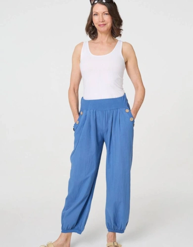 Ramela Elasticated Waist Trouser In Cream And Blue Stripe