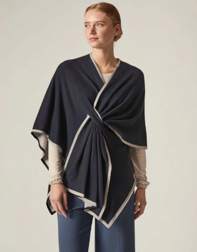 Grey Faux Fur Trim Poncho