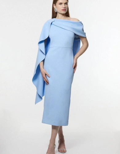 Petite Textured Tailored Contrast Taffeta Ruffle Maxi Dress